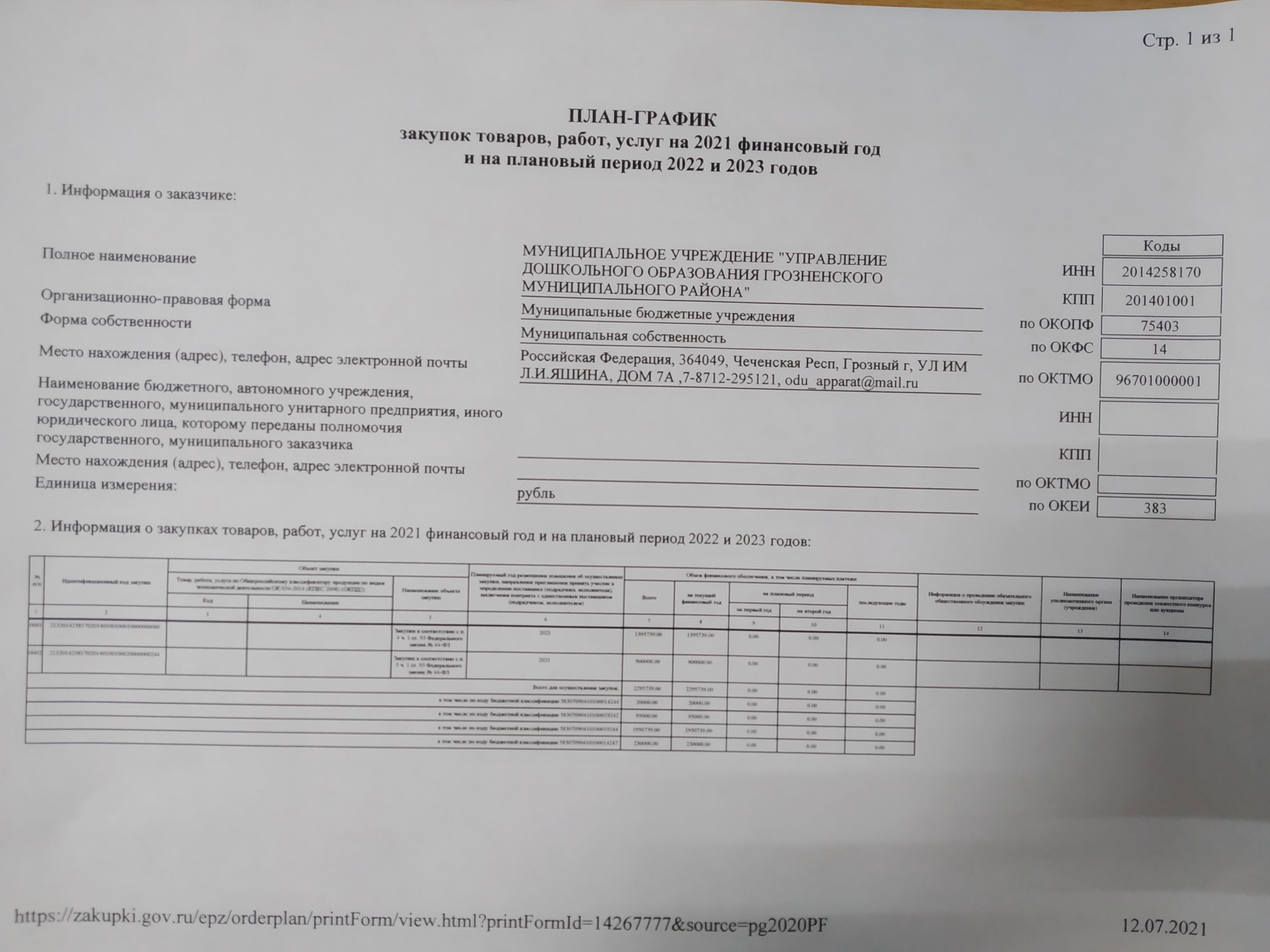 План-График закупок товаров на 2021 г.