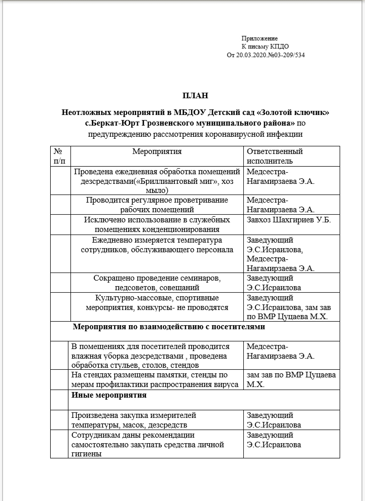Реализация неотложных мероприятий по предупреждению распространения коронавирусной инфекции (COVID – 19)