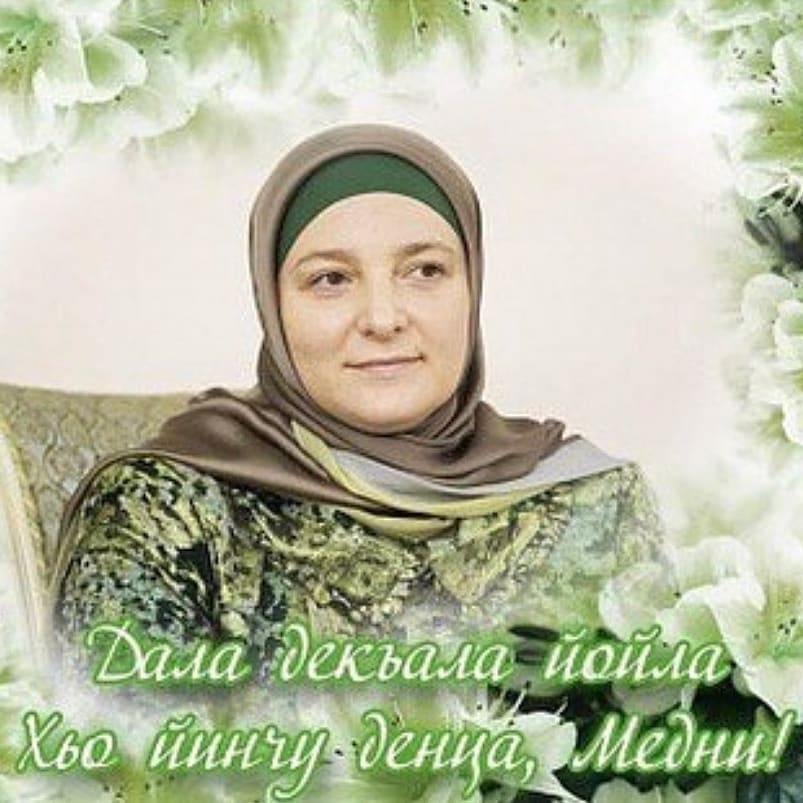 Дорогие друзья! Супруга Главы ЧР, вице-президент РОФ им. Первого Президента ЧР, Героя России Ахмата - Хаджи Кадырова (Дала г1азот къобал дойла цуьнан) Медни Мусаевна Кадырова отмечает свой день рождения.