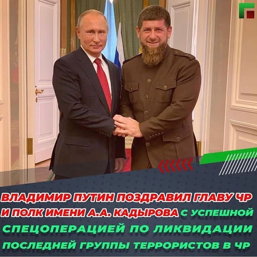 Владимир Путин поздравил Главу ЧР и полк им.А.А.Кадырова с успешной спецоперацией по ликвидации последней группы террористов в ЧР.
