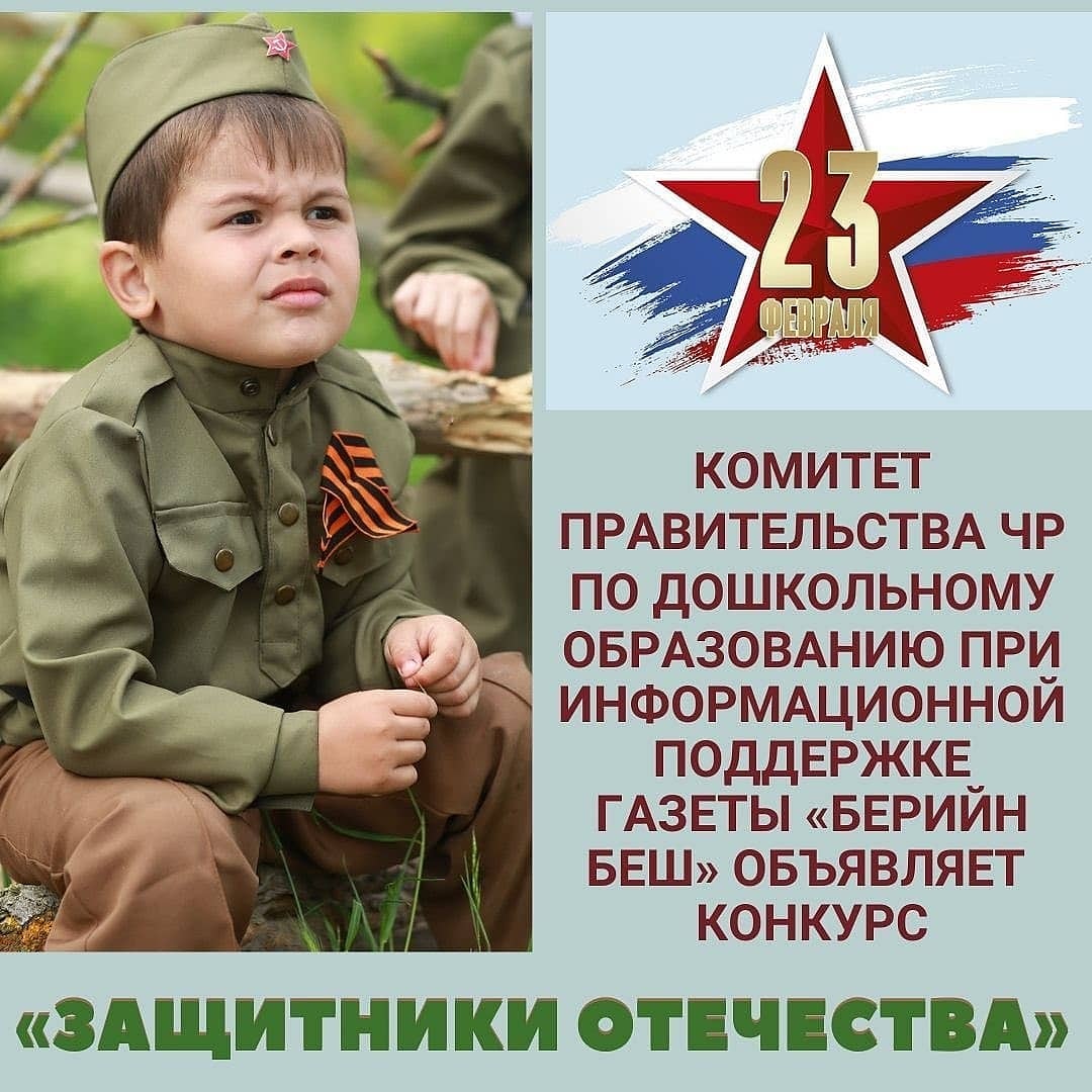 ВНИМАНИЕ! КОНКУРС! ДВЕ НОМИНАЦИИ!Комитет Правительства ЧР по дошкольному образованию при информационной поддержке газеты «Берийн беш» объявляет конкурс «Защитники Отечества»