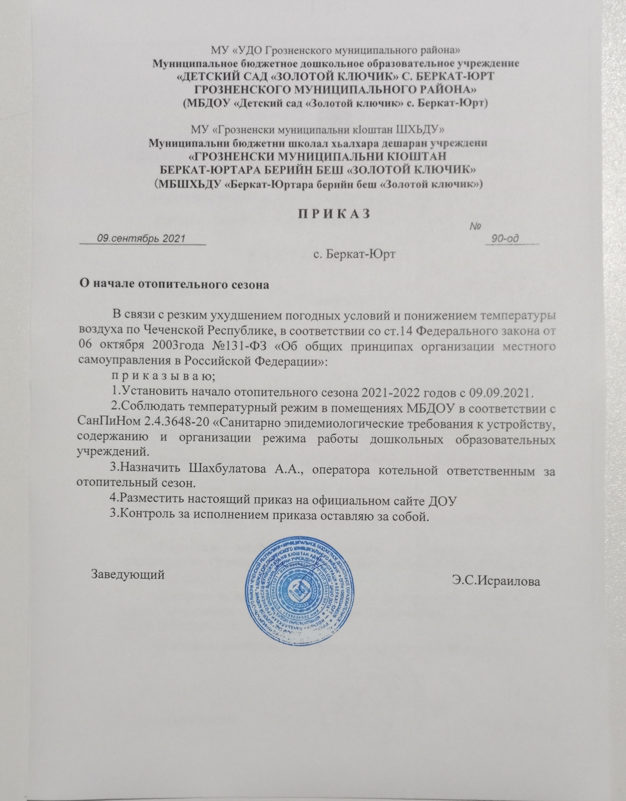 о начале отопительного сезона на 2021-2022 учебный год.
