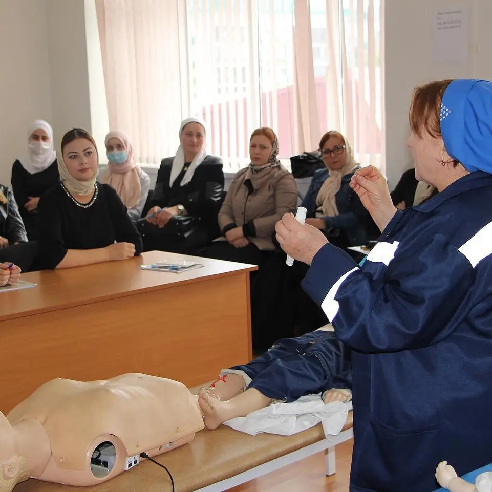 Сегодня , 11.10.2021г. прошли курсы повышения квалификации в Учебно - тренировачном центре ГКУ "РЦМК" МЗ по программе "Первая медицинская помощь пострадавшим при чрезвычайных ситуациях различного характера". Курсы посетили 16 медицинских работников МБДОУ Грозненского муниципального района".