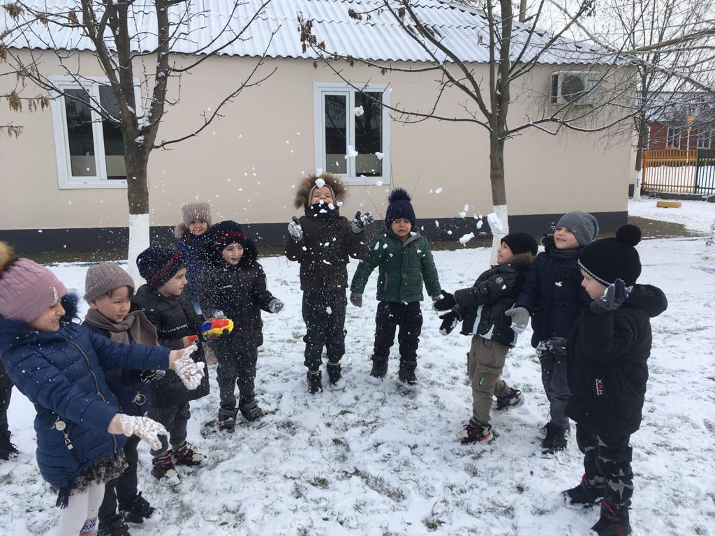 Средняя группа "Седарчий" на прогулке.