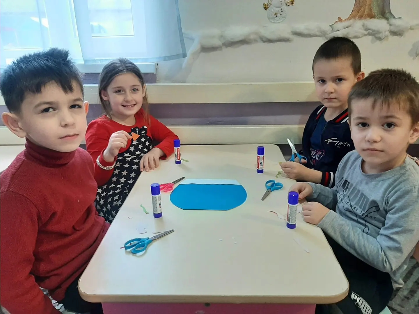 Аппликация "Красивые рыбки в аквариуме" Цель: Учить детей создавать коллективную композицию на фоновой поверхности Старшая группа "Солнышко"