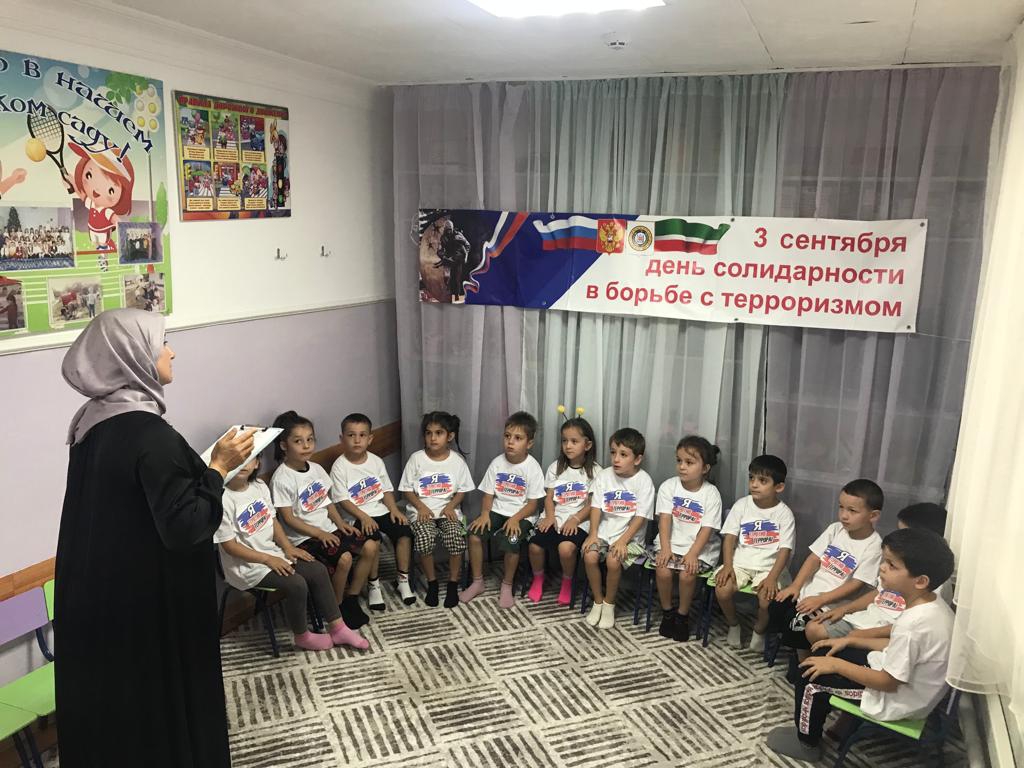 02.09.2021г. в старшей группе «Солнышко» прошла беседа «Пусть будет мир на всей планете!», дети с интересом слушали воспитателя, по окончанию беседы ребята изготовили плакат «Голубь Мира» в память о детях Беслана!