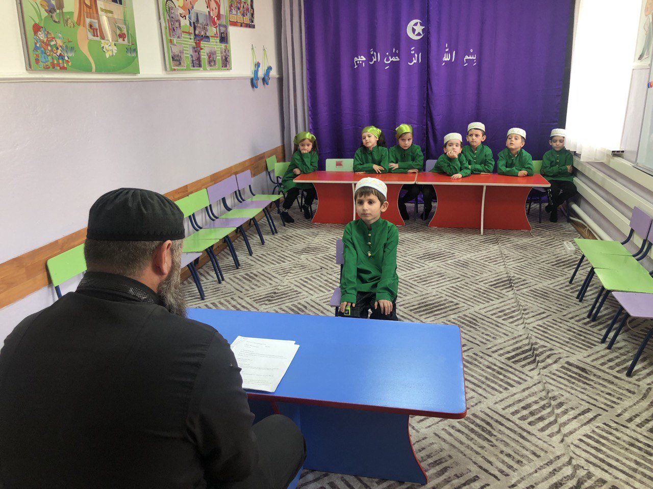 02.11.2022г. в МБДОУ «Детский сад «Золотой ключик» с.Беркат-Юрт» прошел конкурс «Лучший знаток основ Ислама». Конкурс проводил имам с.Беркат-Юрт Абакаев И.К. и состоял из двух этапов: в 1-м этапе участникам предстояло отвечать на вопросы касательно основ религии, во 2-м этапе проверялось знание участников священной суры «Аль-Фатихьа» и молитвы «Ат- Тахьиййату». По итогам конкурса 1-е место было присуждено Испайханову Сайфуллаху Хамзатовичу, 2-е место Адизову Магомед-Шарифу Салавуддиевичу, 3 место Турачевой Сумае Магомедовне. Победитель и призеры были награждены грамотами и подарками.