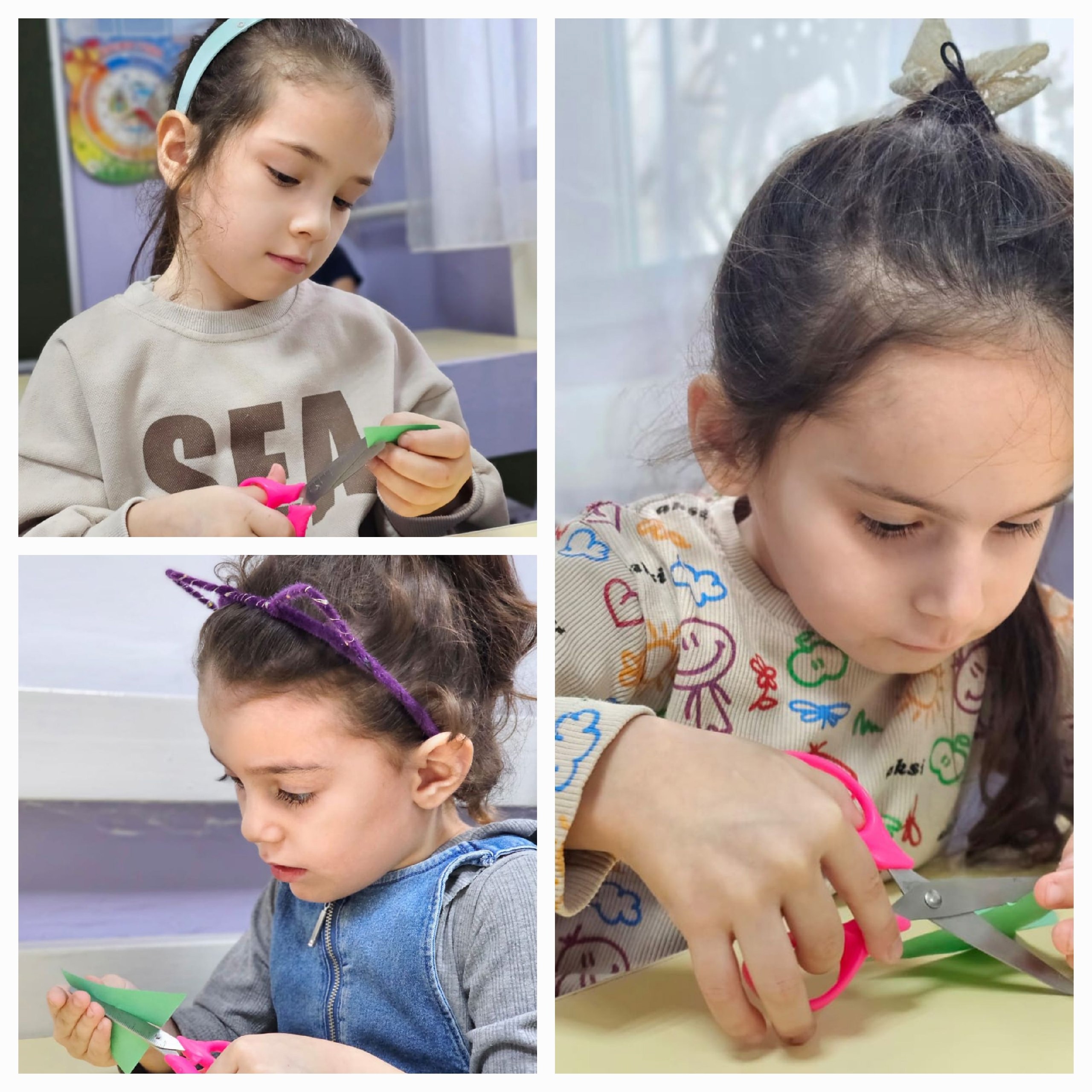 Детки средней группы "Седарчий" учились округлять треугольник и делить ее пополам)