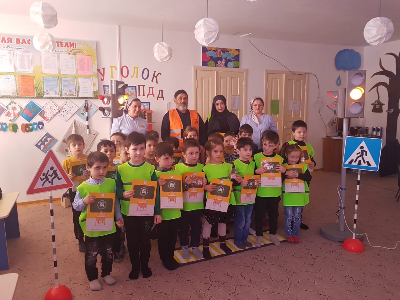 Реализуя годовой план работы по ОБЖ МБДОУ "Золотой ключик", 22.02.2019г. в старших группах дошкольного возраста были проведены мероприятия по изучению правил дарожного движения (ПДД).Сотрудники ГБУ ДО "РДЮЦ" под чутким руководствам инструктора Асламбека Гарасаева продемонтсривровали дошкольникам тренировочные занятия с применением атрибутов по ПДД (светофоры,знаки,пещеходные полосы).Детям были розданы красочные рабочие тетради с знакоми ПДД и брелки на память.