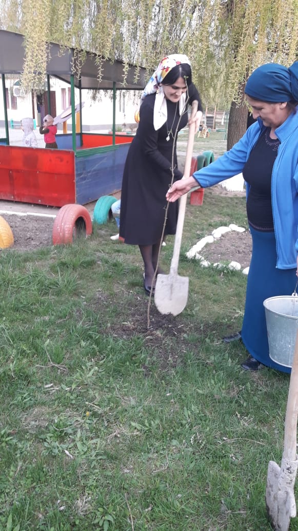 15.04.2019г. главой администрации с.Беркат-Юрт для благоустройству МБДОУ "Золотой ключик" были выделены и посажены саженцы в количестве 30 штук.